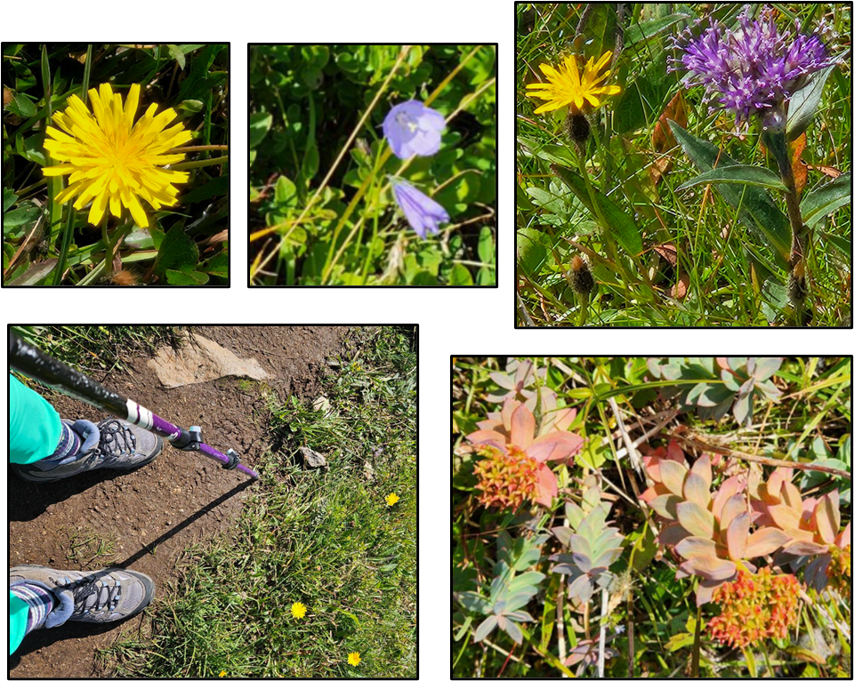 Here are some pictures Patti took of me along the hike. She also took a picture of this guy (top left) whose path we crossed along the trail. Typically, hikers are carrying backpacks. This guy was carrying a grocery bag — quite an unusual accessory on a hike we thought.