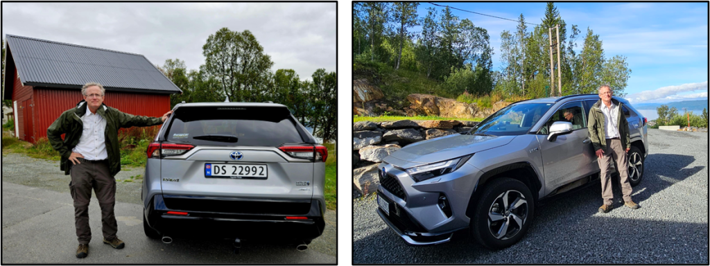We were up early this morning in Tromsø. We packed up, loaded the rental car, and headed out by 9AM. Here’s a couple of pictures Patti took of me with the rental car. It’s an almost new Toyota RAV4 (plugin hybrid). ICYDK, RAV4 is the acronym for Recreational Active Vehicle with 4-wheel-drive.