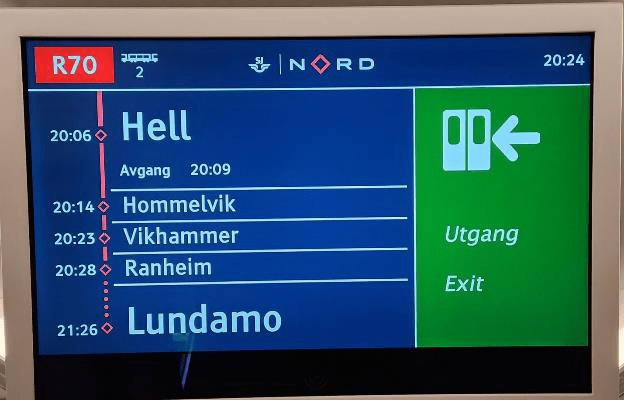 Our train came a little late and the first stop was Hell. I’ve read that some people get off here just to get their pictures with Hell signs, to say that they’ve been to Hell. Here’s the stop on the notification screen on the train. It was getting late so we didn’t get off just to take a picture.