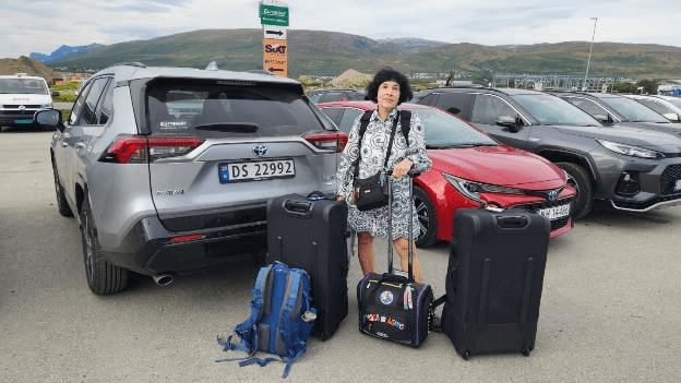 We got to Tromsø at lunchtime and picked up some food at the shopping mall near the airport then drove to the gas station at the airport for one last fill-up of our rental Toyota RAV4 Plugin Hybrid. It’s a nice vehicle, by the way, it handled rough roads well and got about 50 miles per gallon. My only regret is that we didn’t have an electric charger at the places we stayed so I didn’t get to test the full electric performance of the vehicle. I’ve read that with a full charge on the battery it should get 40-45 miles in EV mode with full performance and not burning any gasoline.
