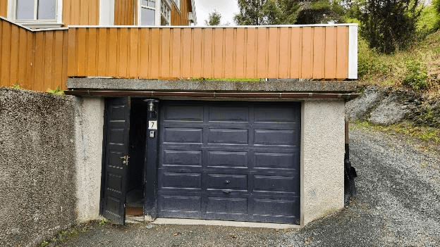 We get into our apartment through the garage, using the personnel door to the left of the roll-up door.