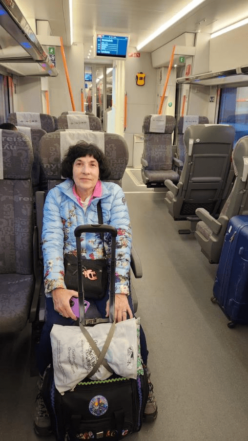 And here’s Patti on the train.
