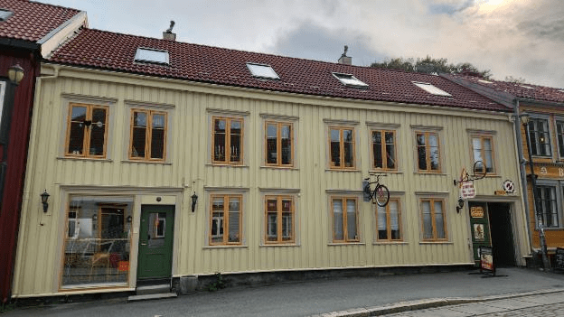 From the restaurant website: “This building is among the best preserved buildings on Baklandet. We have a long and exciting history that dates back to the 1700’s. The premises were home to many different companies from a transport station (although this is not documented), to a milliner, a carpentry workshop, a dairy and a launderette.”