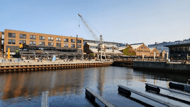 We got to the area of town called Solsiden that resembles a yuppie habitat of up-scale restaurants and apartments with old shipping equipment like cranes still around for that steampunk ambiance.