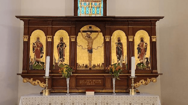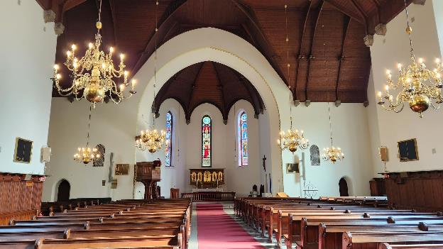 At lunchtime we walked downtown and ate at Mir Kebab, I had a kebab and Patti got a hamburger (of course she did). On the way we noticed that our local church’s door was open, so we went in to see it. It’s a lovely church.