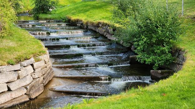 On the way home from the grocery we walked through our local park, and I took this picture of a fish ladder, which should help migrating fish navigate the rapids and spawn upstream.