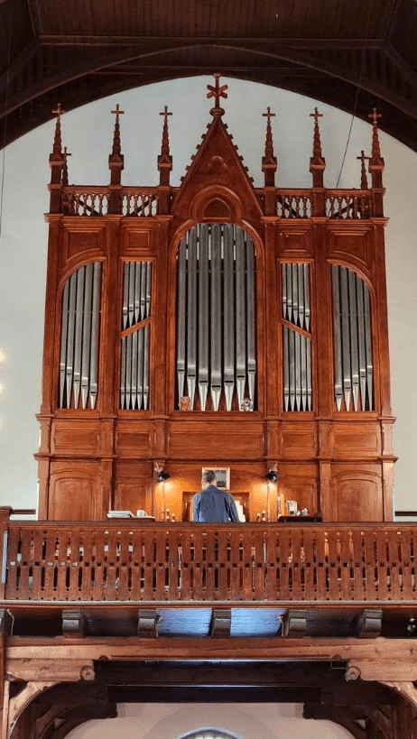 The organist was practicing, which would have been exciting for me to hear back when I could hear normally. Unfortunately, my new cochlear implant doesn’t do a good job with music, so the organ sounded strange to my cyborg right ear.