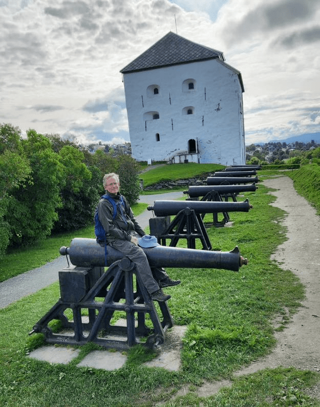 From near the bike shop we walked uphill to the old fortress that stands on a hill overlooking downtown Trondheim. It’s called Kristiansten Festning.