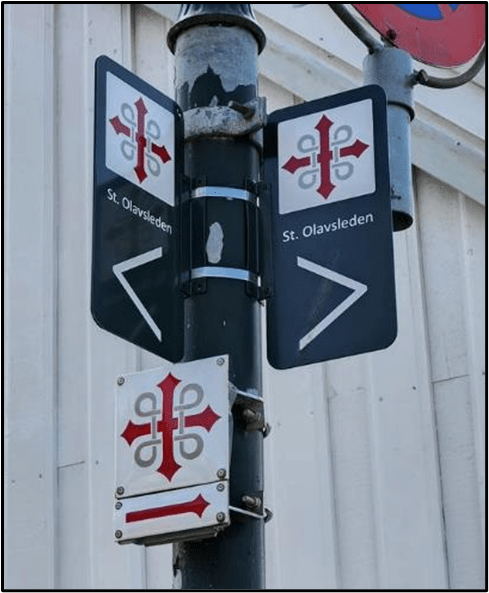 We decided to eat lunch at a place near the bike shop, so we walked back down the hill. On the way we saw this sign for the Pilgrimage Path of St. Olav. It looks like the path is pretty well marked here. When they get to this spot the pilgrims are only a couple of kilometers from the Cathedral.