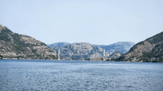 Then we got to the entrance to the Lysefjord, that has a bridge across it.