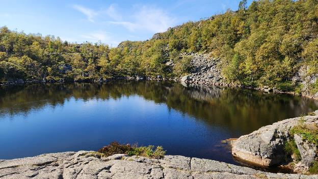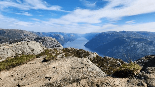 The name means light fjord, and is said to be derived from the lightly colored granite rocks along its sides. It is particularly well known for the huge Preikestolen cliff overlooking the fjord, which is a major tourist destination for the region. The fairly isolated village of Lysebotn lies at the eastern end of the fjord and the villages of Forsand and Oanes both lie at the western end of the fjord near the Lysefjord Bridge, the only crossing of the fjord.”