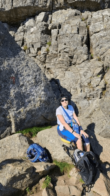 On Pulpit Rock there were a lot of people hanging out, chatting, and eating lunch. We found a spot and ate our lunch that Patti had made yesterday, chicken with risotto and carrots. Here’s our lunch spot.