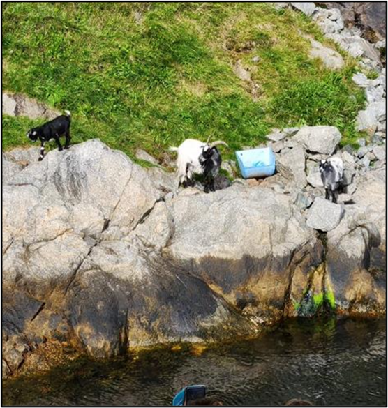 At one place some goats were waiting for boats to come by and throw food to them, which several of the crew members did.