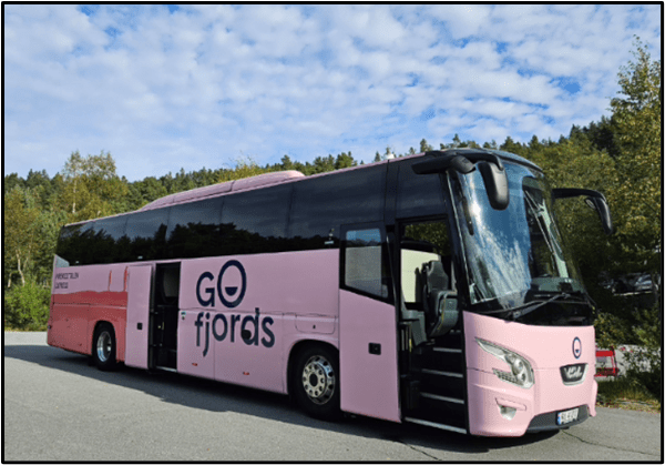 Since we were going to be doing a lot of walking today on the hike we took the #4 bus instead of walking from our Airbnb to the Radisson Blu Hotel where we met the bus — it was pink!!! We had reserved tickets on the Express Bus which were about $45 USD per person for the 45-minute ride.