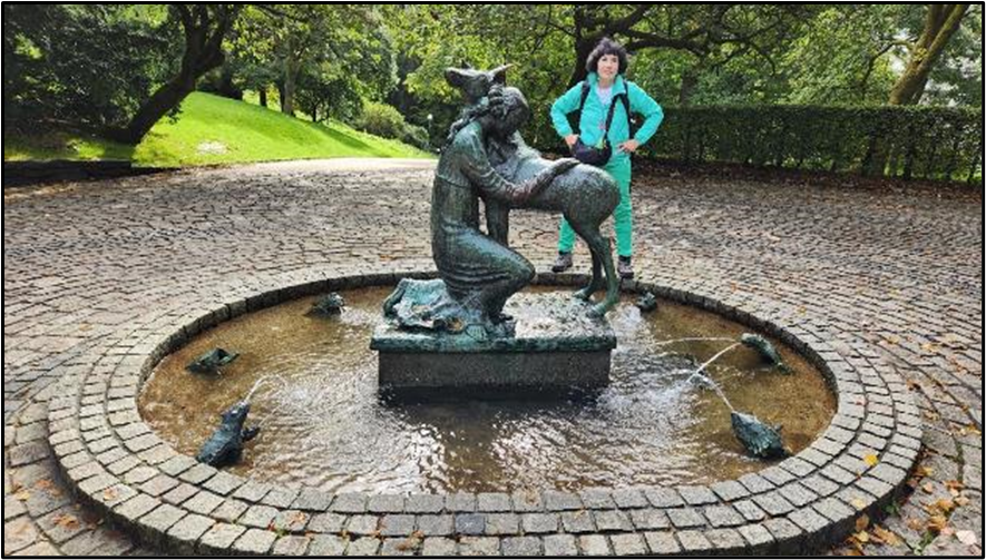 “This beautiful fountain is located between the upper and lower parts of Nygårdsparken. Looking at the cute and humble fountain, it can be surprising to know it has a link to the grandiose Vigeland Park in Oslo. Emanuel Vigeland who is the creator of the fountain, is the younger brother of Gustav Vigeland, who created the grand sculpture park in Oslo.”