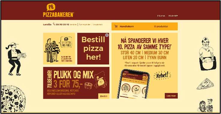 We didn’t have any particular reason to sleep late and not do much today, but, that’s pretty much what we did. We both went out for a midmorning run, then we walked down to a pizza place I’ve been wanting to try, called Pizzabakeren. It’s a chain that we’ve seen around Norway. They have cute graphics in their advertising.