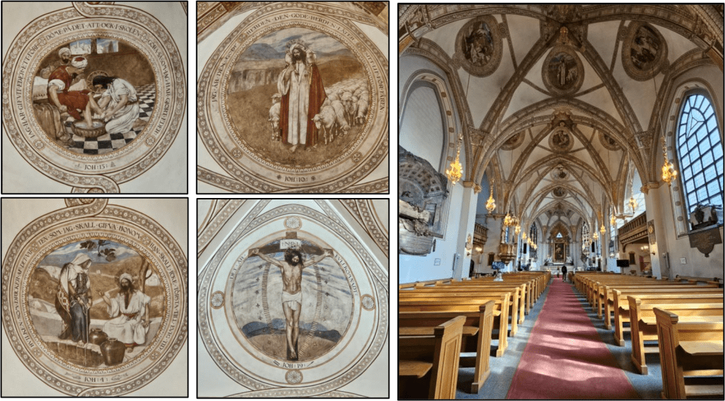 It’s a gorgeous church inside! I really liked the round paintings on the ceiling illustrating bible stories.