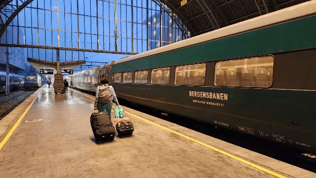 Unfortunately, our seats were in the last carriage which was outside the station, so we had to walk one train-car’s worth of distance in the rain. But that was the last of Bergen’s rain that we had to endure.