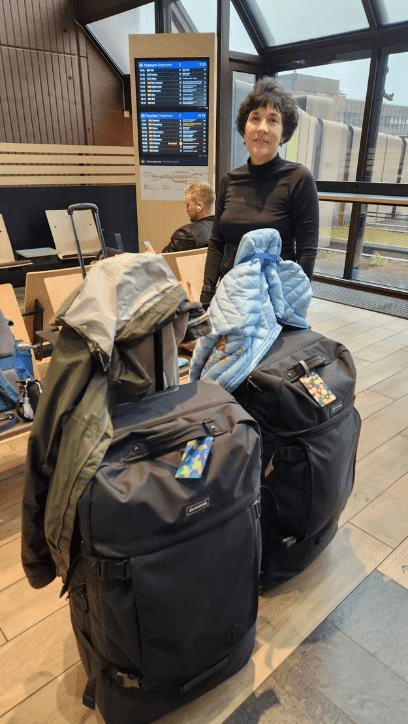 We had about a 1.5 hour layover at the Oslo train station so we found a nice place to sit and wait for our train to Stockholm. Patti was all dried out at this point and seemed happier than she was this morning. We put our jackets over the handles of our rolling suitcases so they would finish drying.