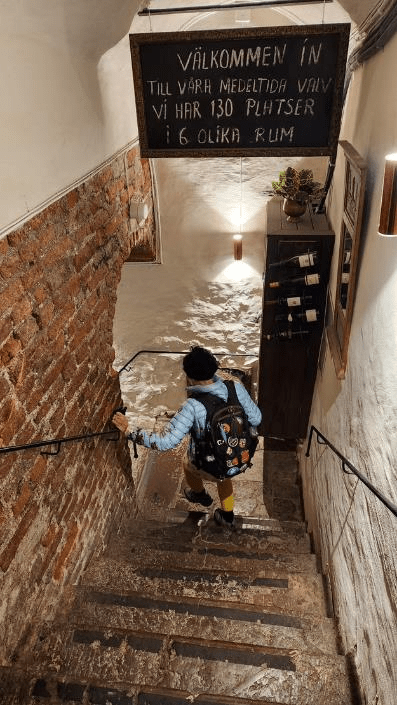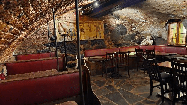 The restaurant is in the basement level that used to be used as a prison. The oldest construction is from the 14th century.