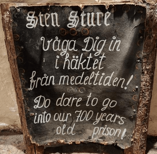 There was a scary sign on the stairs daring us to go into their 700-year old prison.
