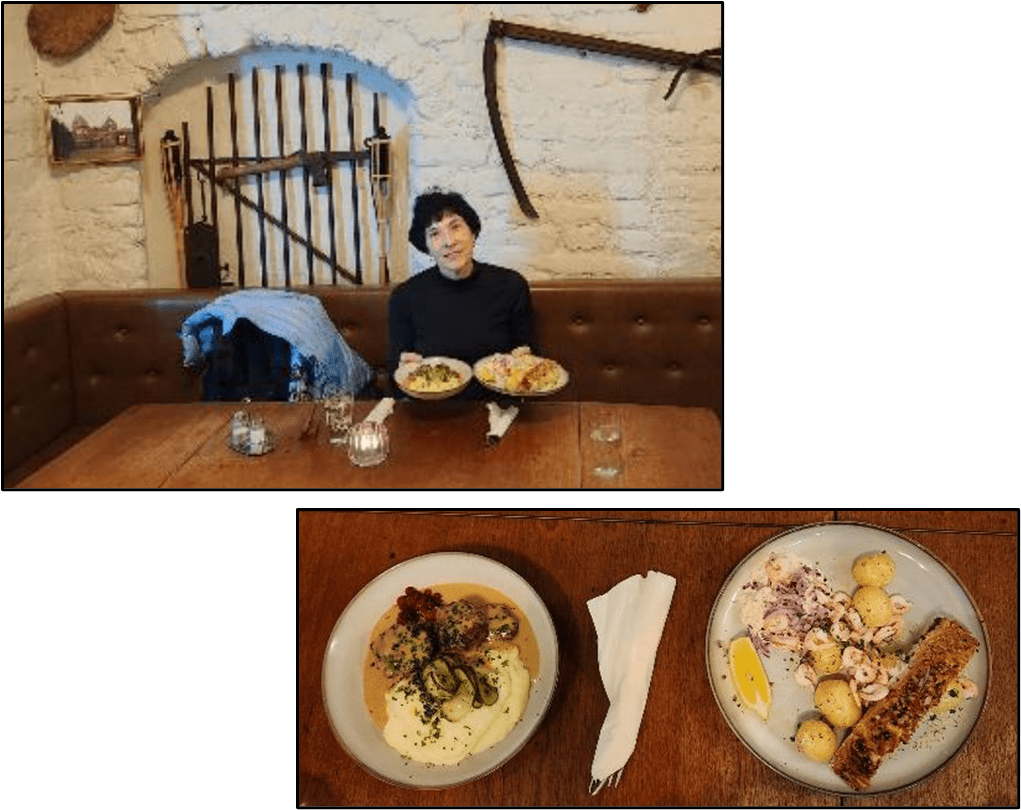 It was now time for lunch, so we decided to try a restaurant on the same square as the museum. We found a place and walked down some stairways to get two levels below street level.