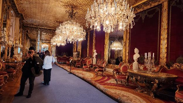 After the guard changing, we discovered a nearby café to eat lunch at and then returned to the palace to see the “Royal Apartments”. These rooms have been used for various purposes over the centuries, and there are a lot of them. As always in Royal Palaces the luxury was over the top. Shown below are a few pictures.