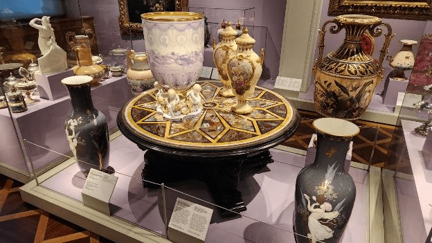 There were all kinds of vases and inlaid tables.
