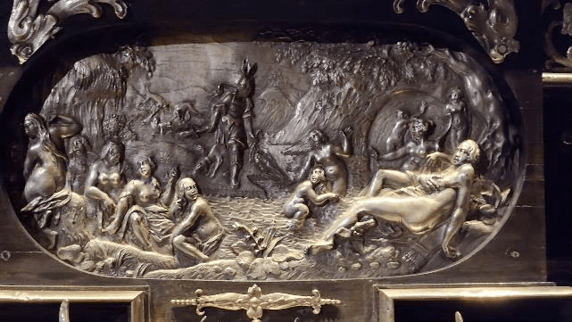 Here’s a closeup of the scene at the bottom of the mirror. The intricate work on all this stuff is just amazing.