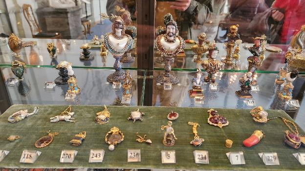 In the Treasury there were hundreds of small enamel boxes, pendants, and clocks.