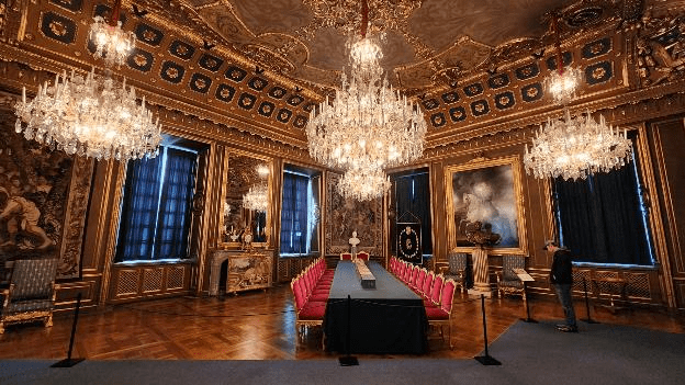 The Nobel Peace Prize Awards are presented to the recipients on December 10 every year, which is the anniversary of Alfred Nobel’s death. The awards are handed out in the presences of the King and Queen of Sweden. After the presentation ceremony, the Noble Peace Prize recipients are hosted by a lunch with the King and Queen of Sweden in this dining room.