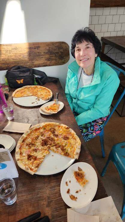 For lunch we went to a nearby pizza restaurant which was quite good. Here’s Patti with our pizza pies.