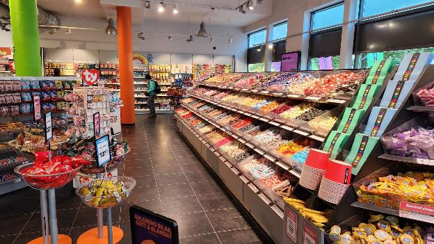 On our walk back home Patti wanted to stop into this candy store which makes a nice, colorful picture I think. You can see Patti at the end of the aisle.