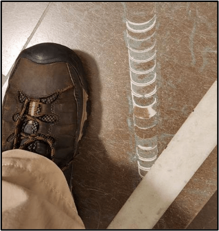 At the museum we bought our tickets and put our backpacks into a locker. Going up the stairs I enjoyed seeing all the Orthoceras fossils in the flooring. This one was about the length of my boot.
