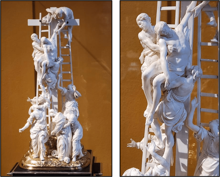This is a really nice ivory carving of the descent from the cross, referred to as the “The Deposition” — shown is the full display along with a close-up view.