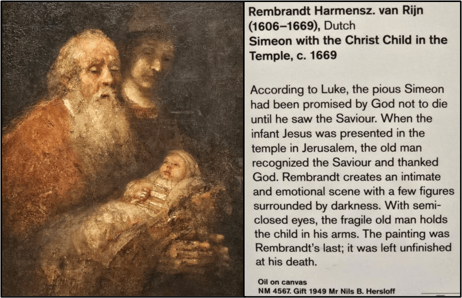After lunch we went through the 1600s where there were several paintings by Rembrandt van Rijn like this one called “Simeon with the Christ Child in the Temple” from 1669.