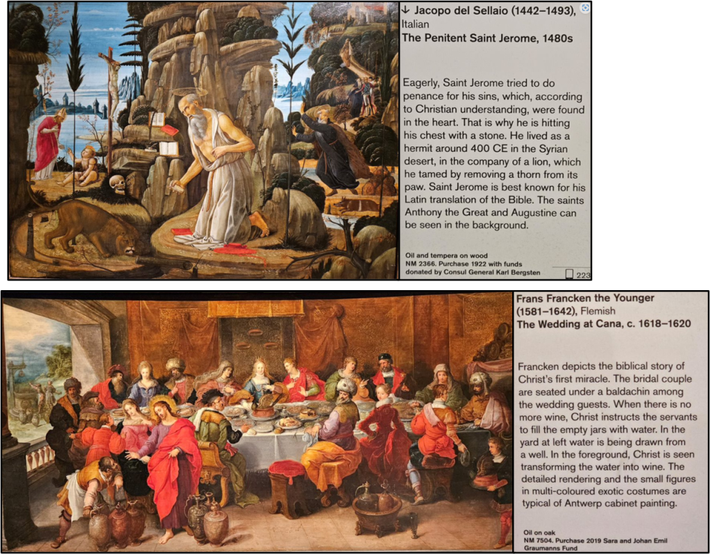 Shown below are some additional paintings we enjoyed seeing, including the painting of Saint Jerome — we’ve seen paintings of Saint Jerome at museums all over the world. He’s a popular subject.