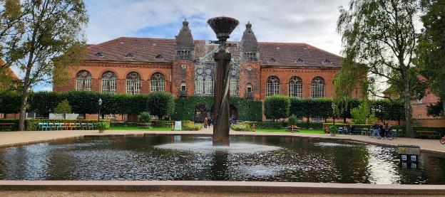 Patti found this mermaid sculpture. This is not the famous “Little Mermaid” which we hope to see soon, but a more modern rendition that is placed between the modern library and a canal. You can see Patti is gasping for breath, like a “mermaid out of water”.