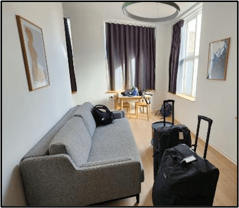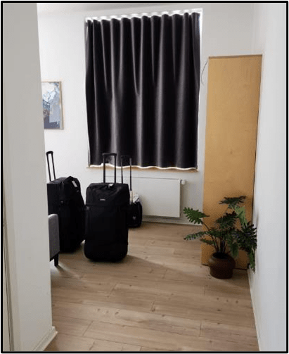 After unpacking, we went to the Coop365 grocery store located nearby. Later we walked around the building to explore the “lay of the land” and to find the laundry room. Shown below is a picture of the building layout. Our room is at the top right with blue circle around it. It looks like we have the largest apartment in the building.