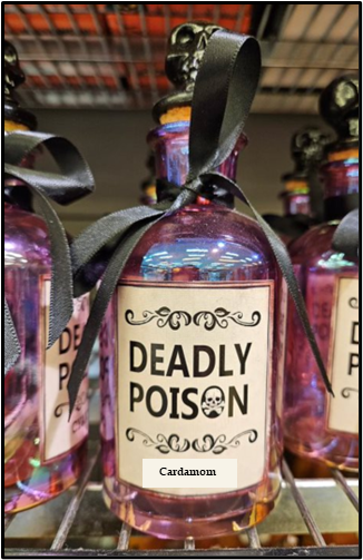 “Cardamom, also spelled cardamon, is a spice consisting of whole or ground dried fruits, or seeds, of Elettaria cardamomum, a herbaceous perennial plant of the ginger family. The seeds have a warm, slightly pungent, and highly aromatic flavor. They are a popular seasoning in Scandinavian pastries.“