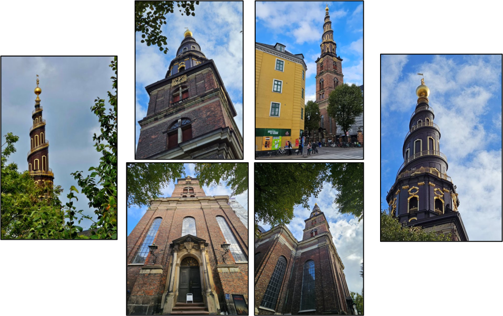 Shortly after that, we crossed a bridge into Christiania and spied a magnificent spiral spire of a church. Unfortunately, renovations are going on at this church, so we weren’t able to go inside or take the stairs up the tower to the top.