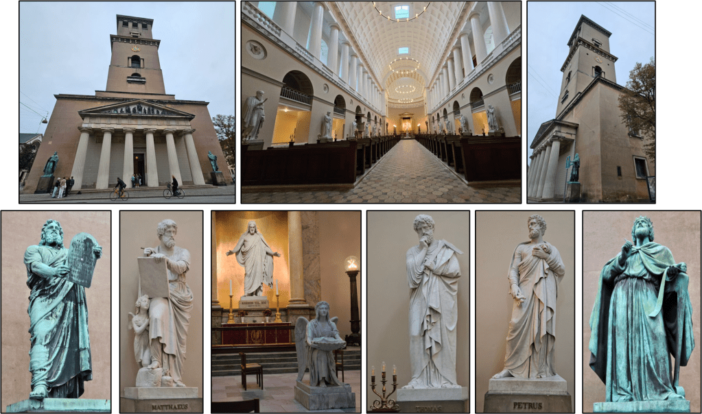 “The Church of Our Lady (Danish: Vor Frue Kirke) is the cathedral of Copenhagen. It is situated on the Frue Plads public square in central Copenhagen, next to the historic main building of the University of Copenhagen. The present-day version of the church was designed by the architect Christian Frederik Hansen (1756–1845) in the Neoclassical style and was completed in 1829.”