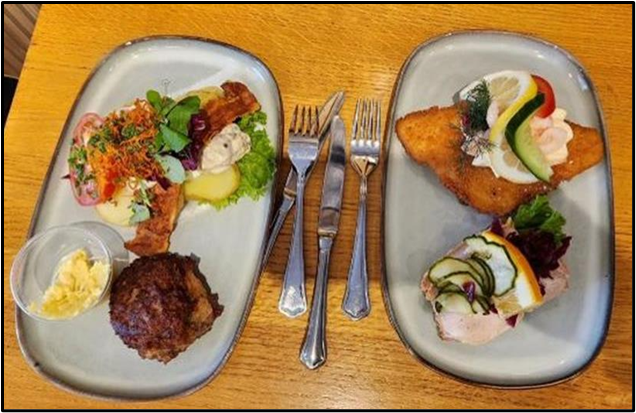 “Smørrebrød is a traditional Danish open-faced sandwich, typically made with rye bread and topped with various ingredients such as meat, fish, cheese, vegetables, and spreads. It is often served as a lunch dish or snack in Denmark.”