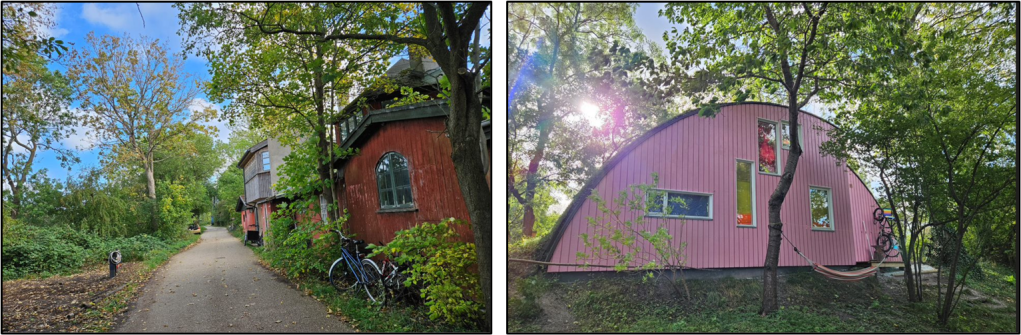 Further along our route, we walked through an interesting area of older houses built along a canal. I like the pink house shaped like a teardrop camper. We discovered later that this area is referred to as Freetown Christiania.
