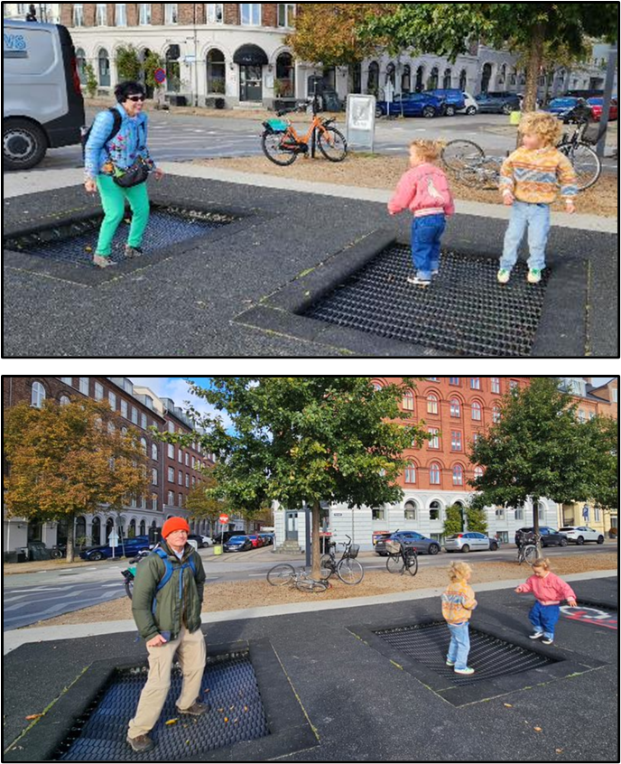 We continued our walk through Christiana toward the City Centre. At a playground along the harbor, we jumped on the trampolines. It looked like these two girls weren’t quite sure what to make of us.